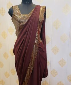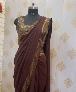 BROWN GEORGETTE AND SEQUINS SAREE