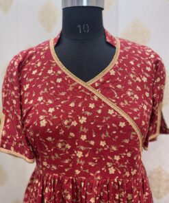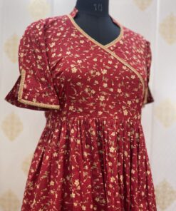 - Printed cotton kurta in gathers style with lace on the neck and collar.