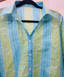 - Printed cotton front open oversized shirt style top.