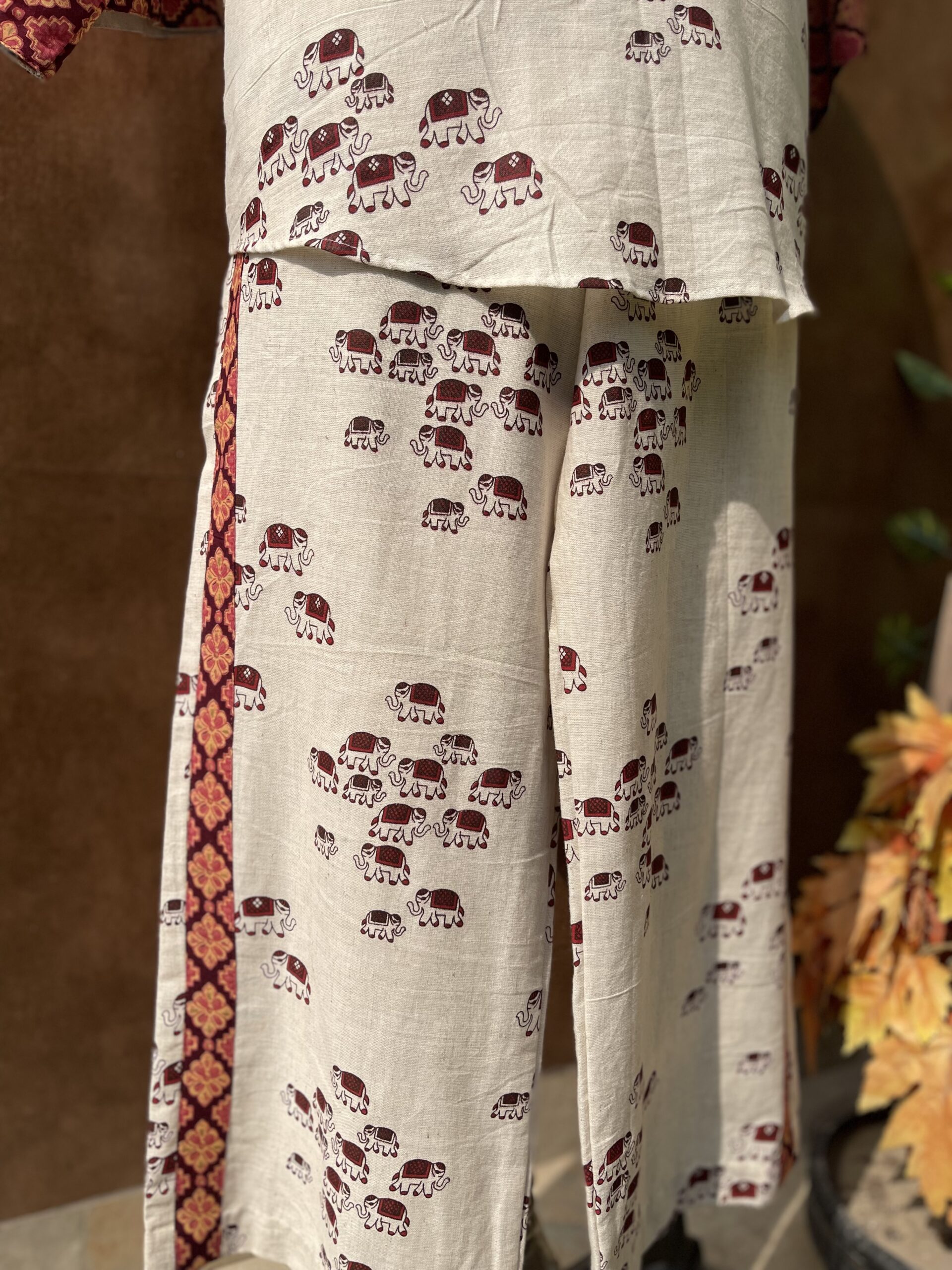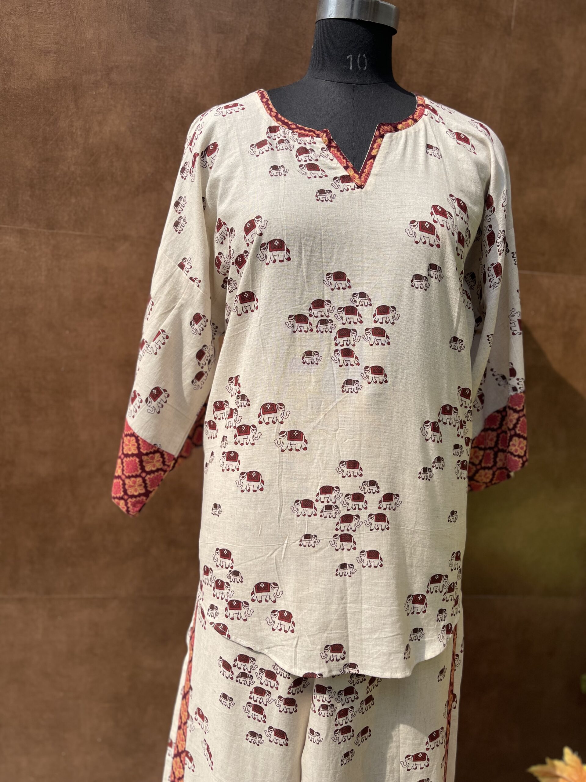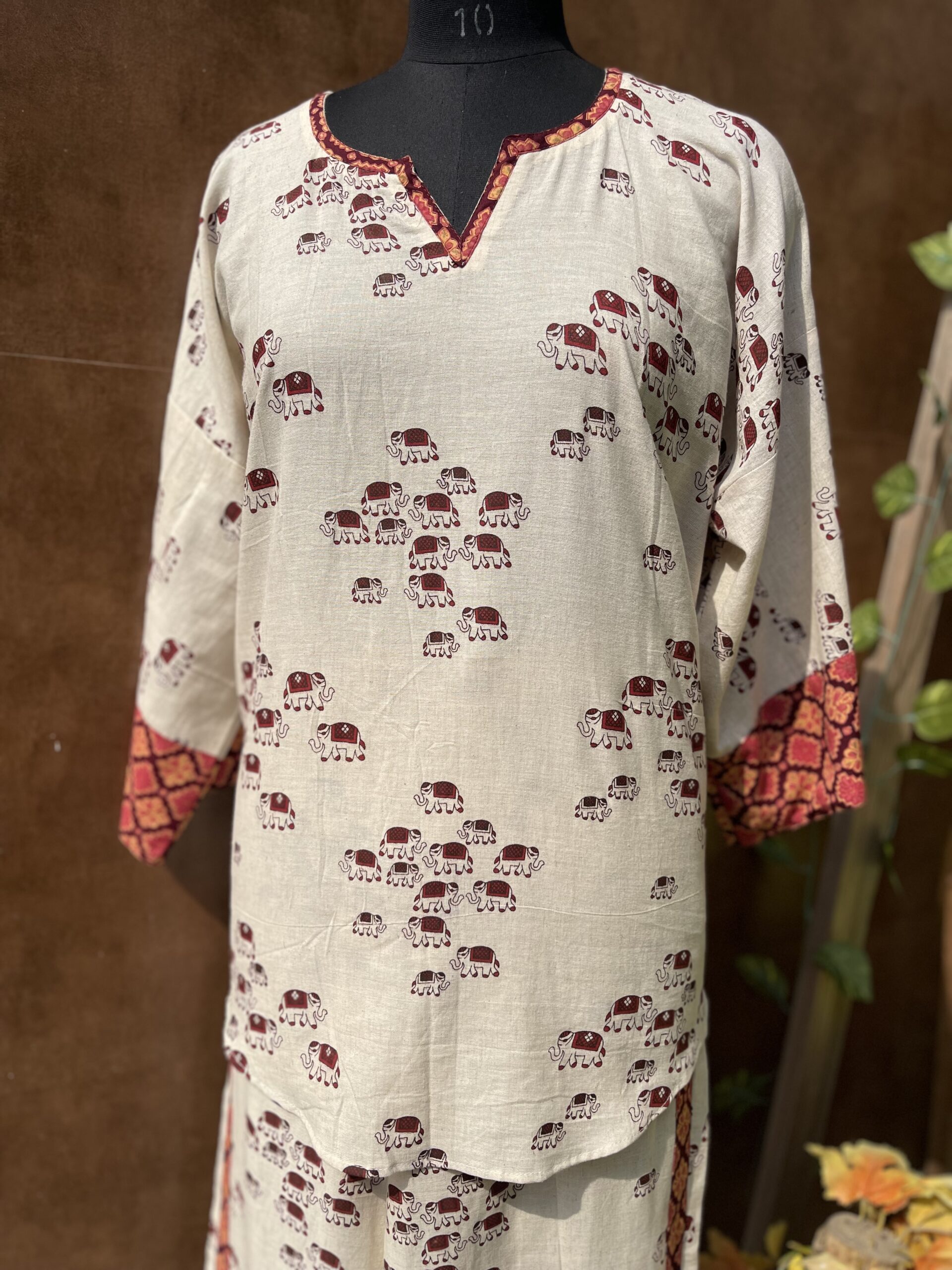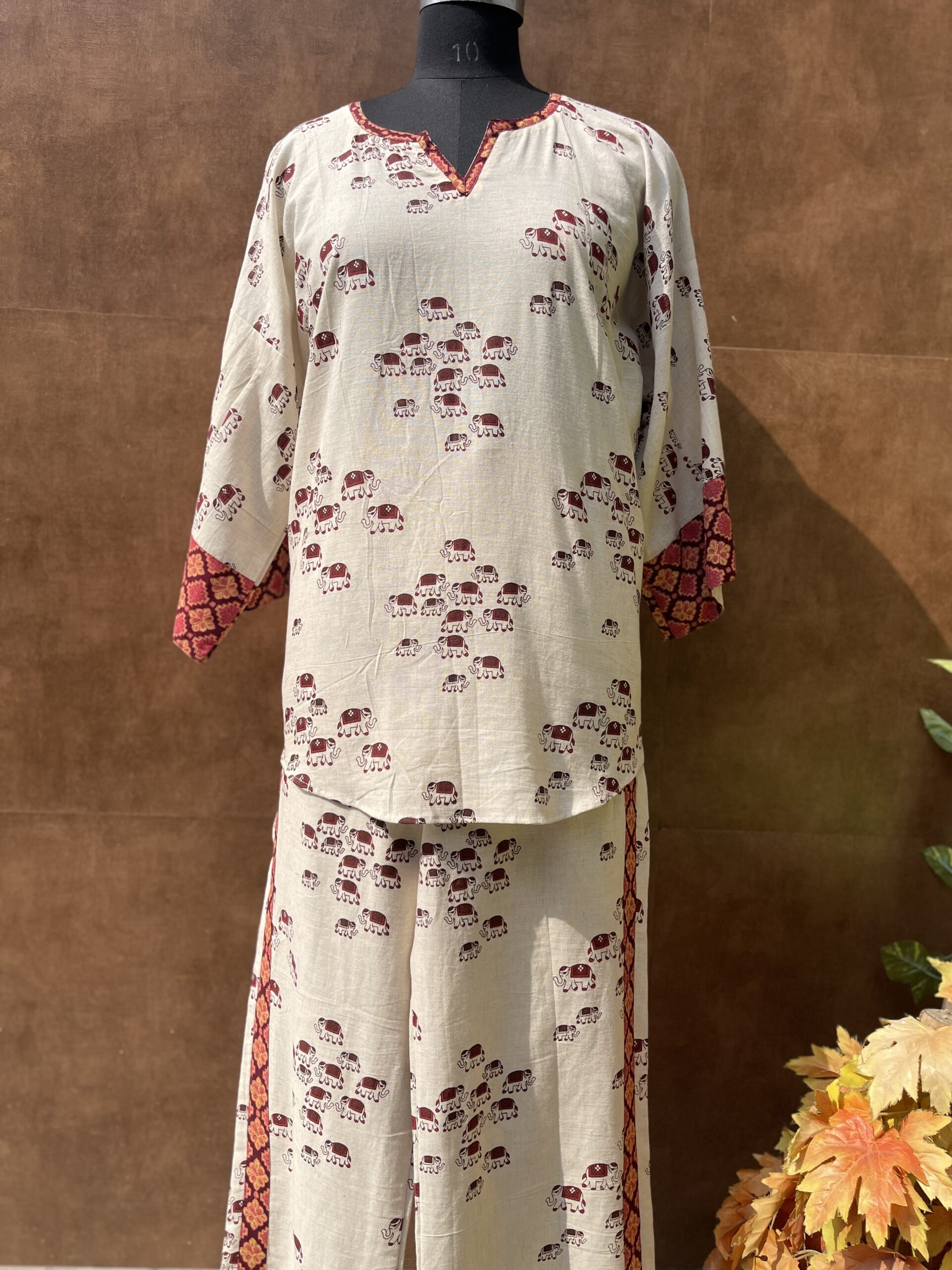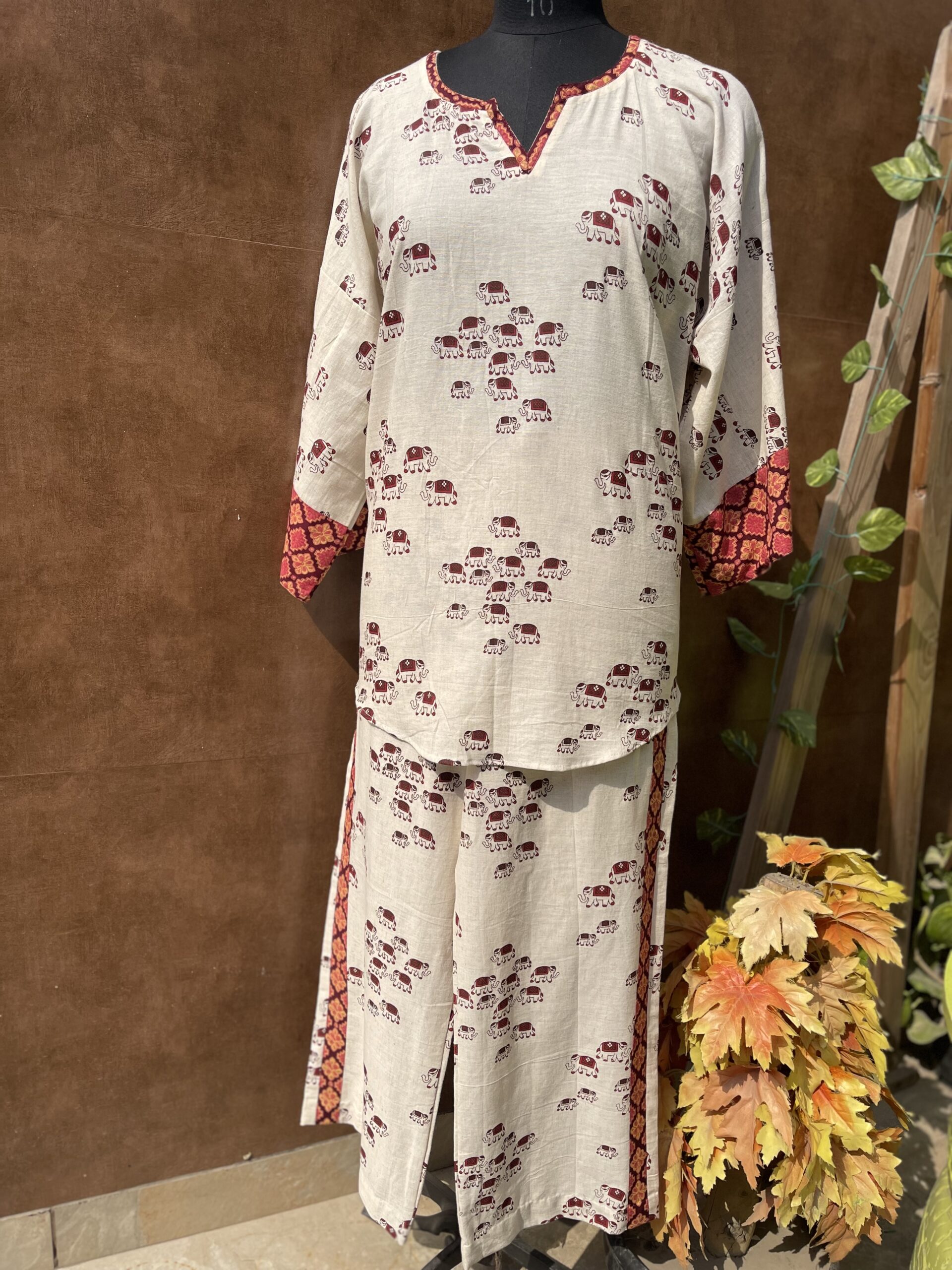 An elegant linen cord set with elephant print. A must have outfit for this summer season.