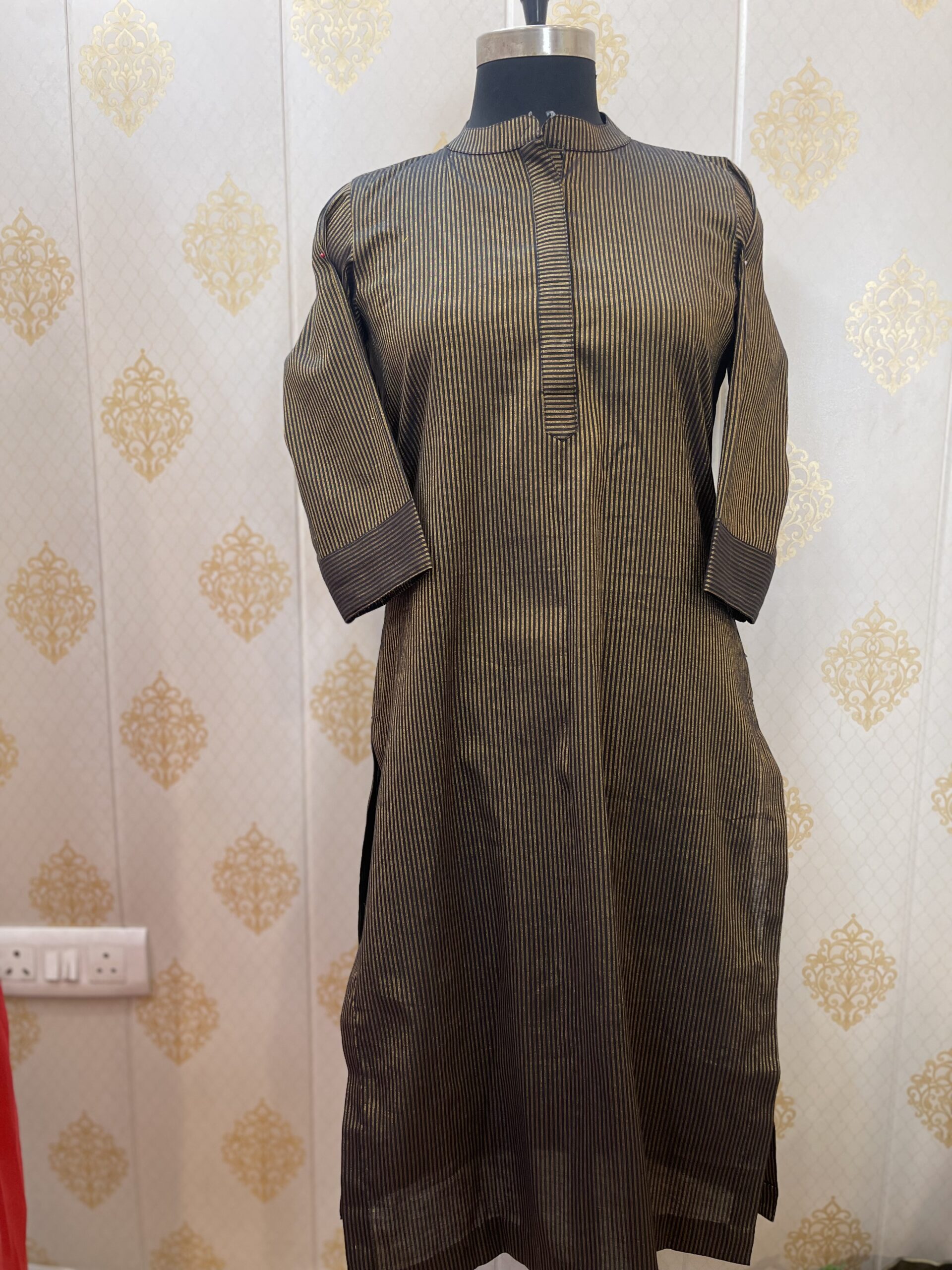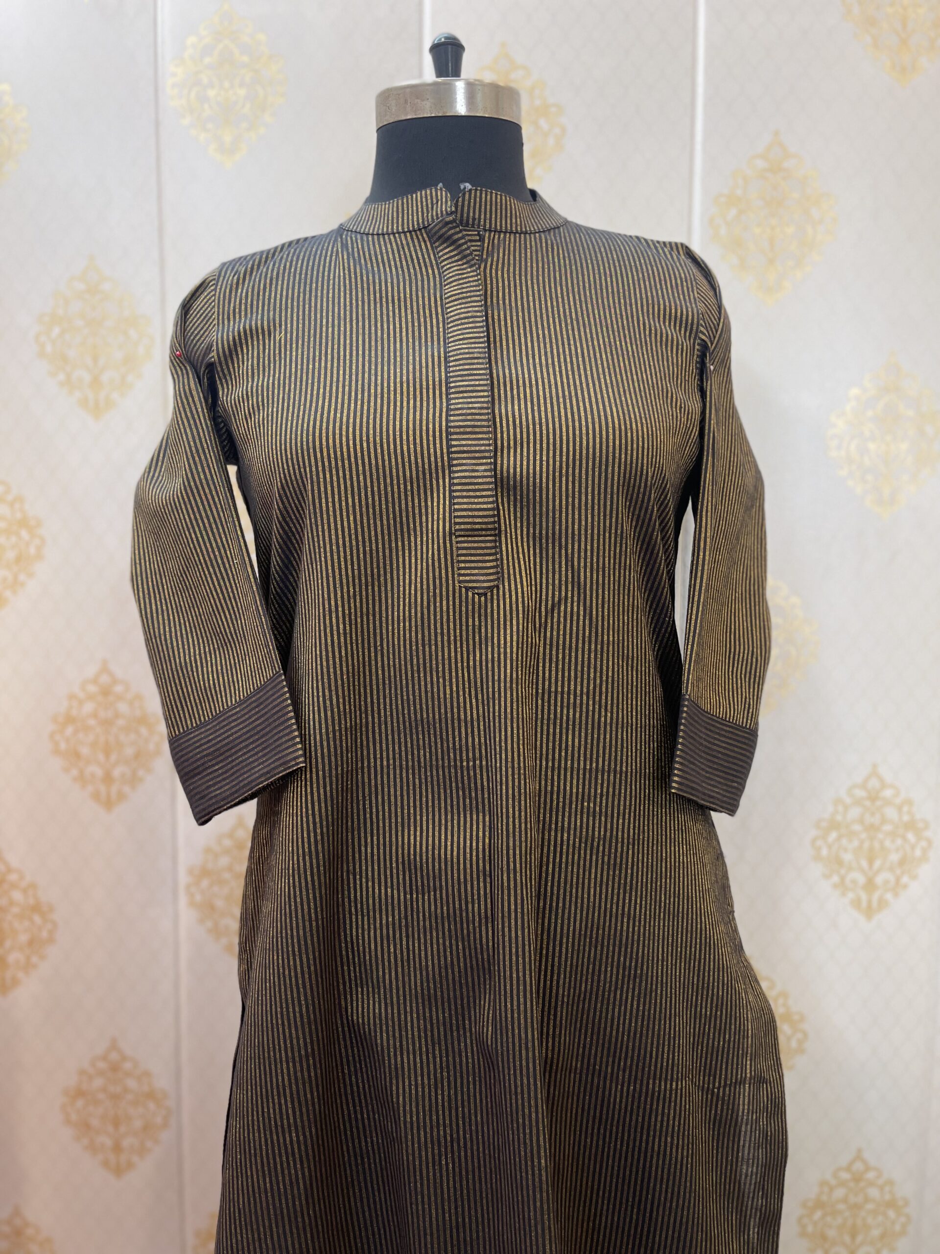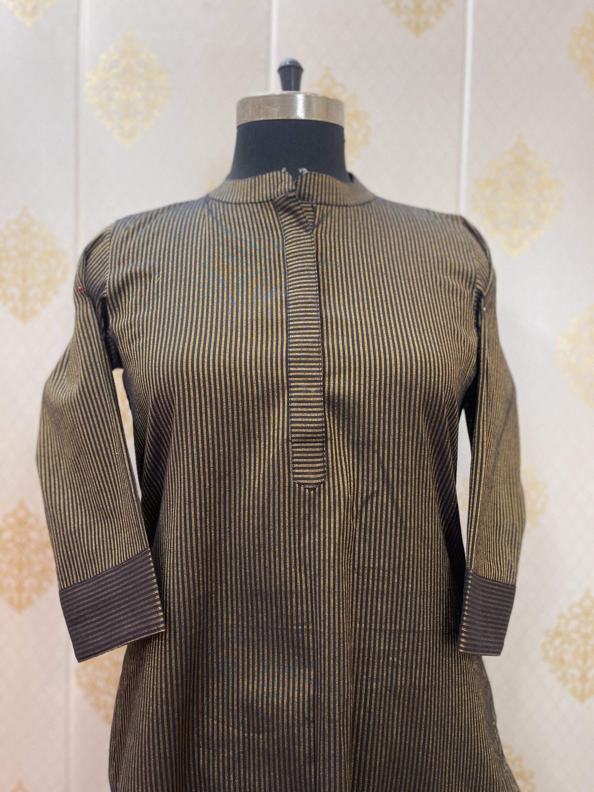 - Cotton striped kurta with collar.