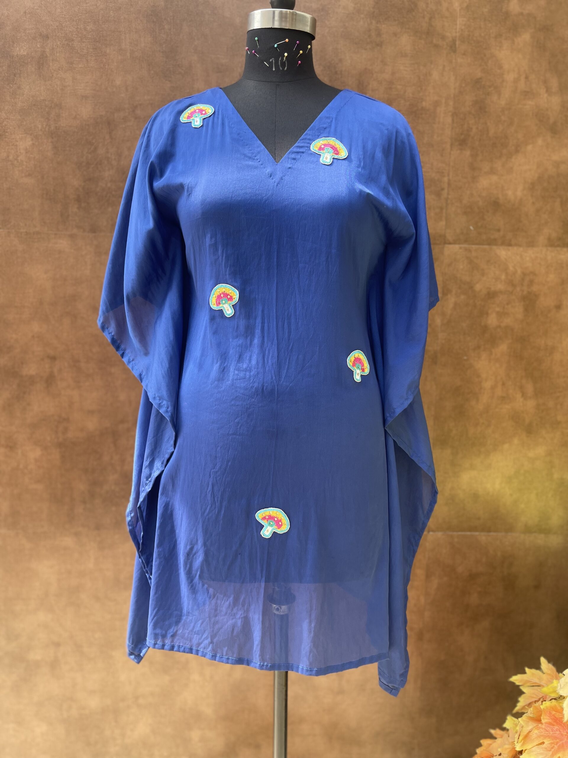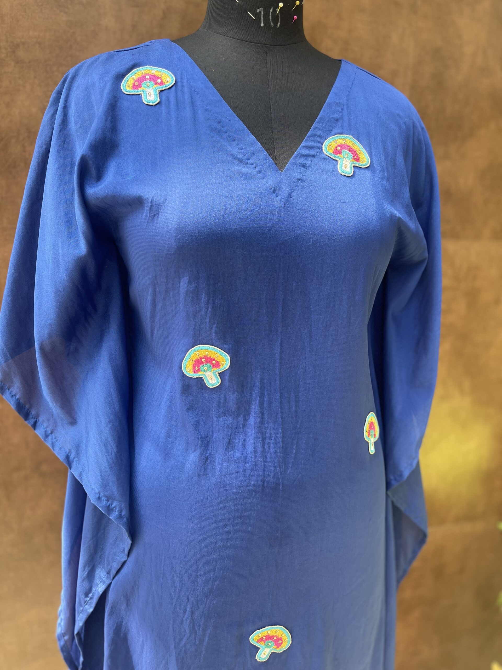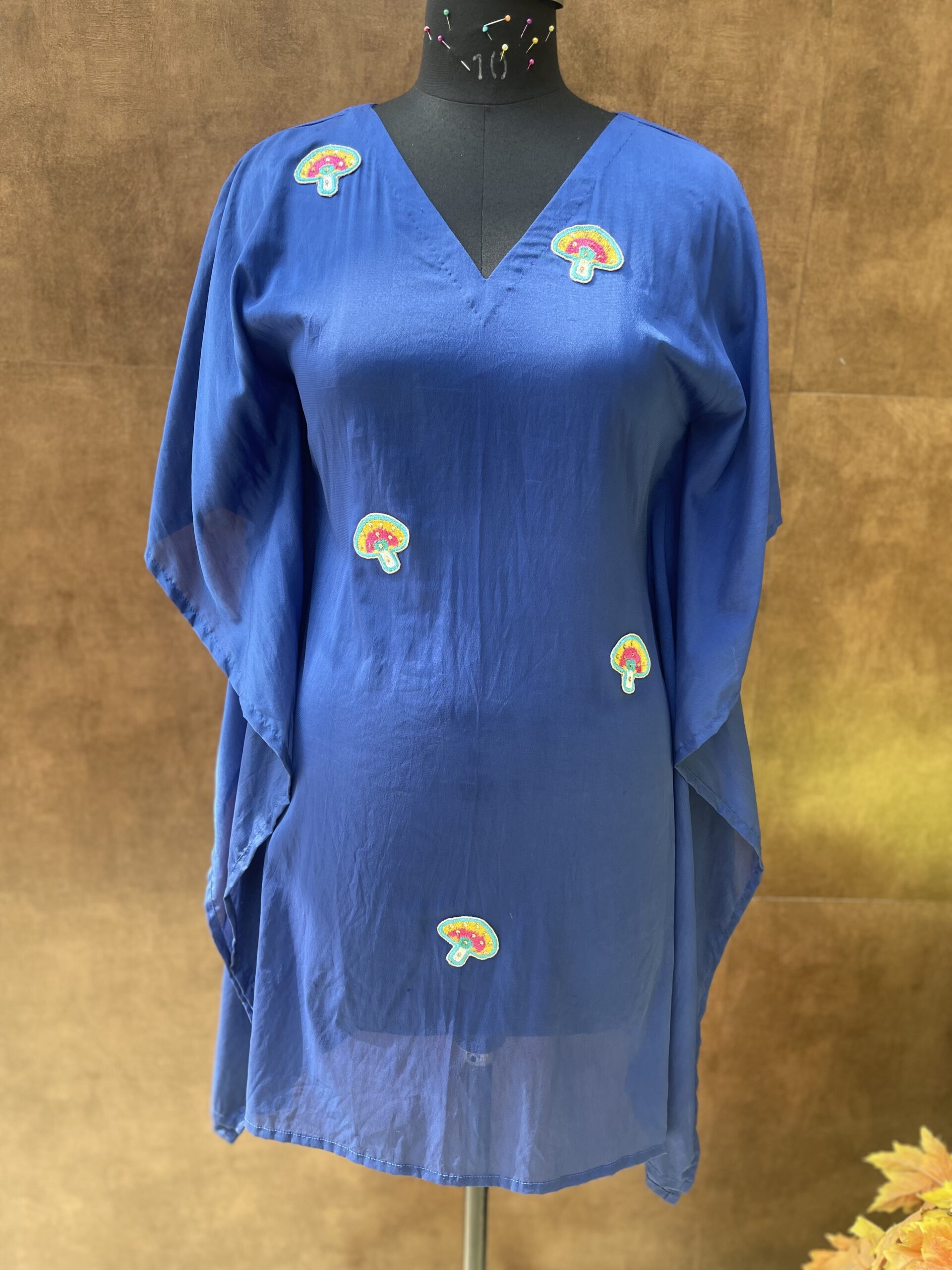 - Blue crepe kaftaan with patch work, comes with cotton inner.