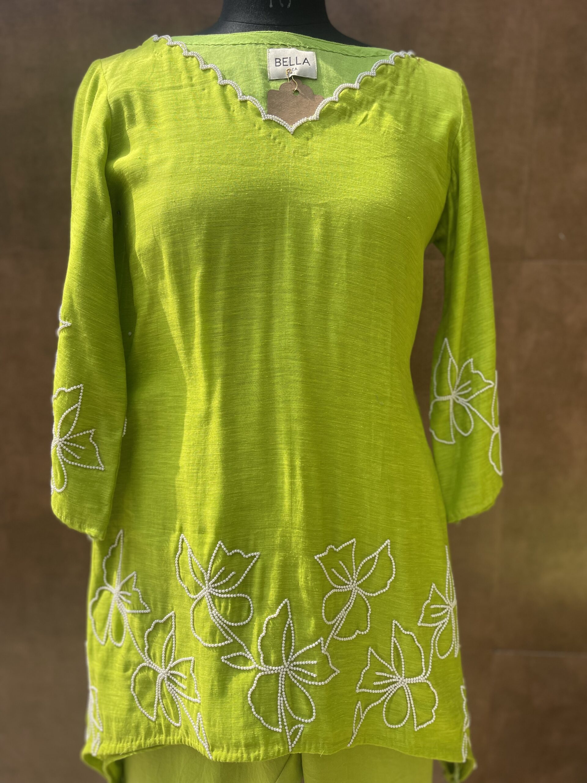 - Sleeve type : Three fourth oversized embroidered sleeve