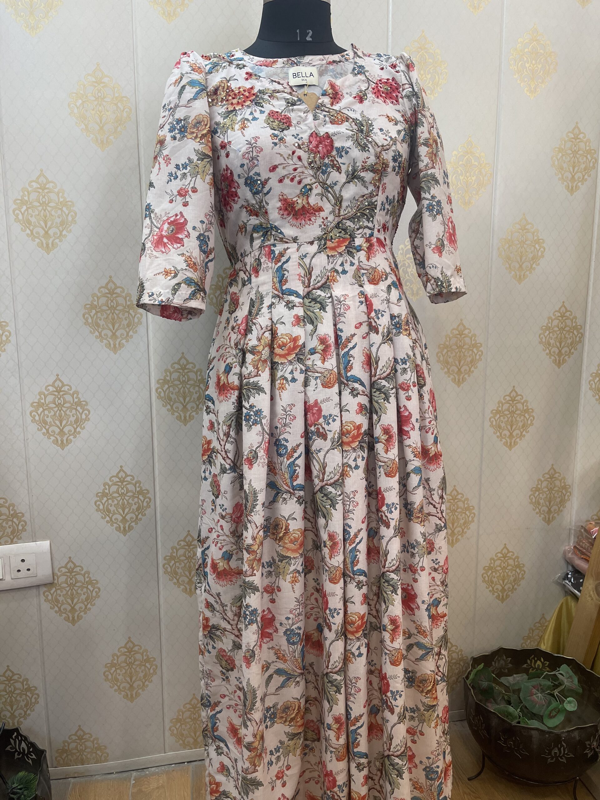PRINTED COTTON DRESS WITH HANDWORK