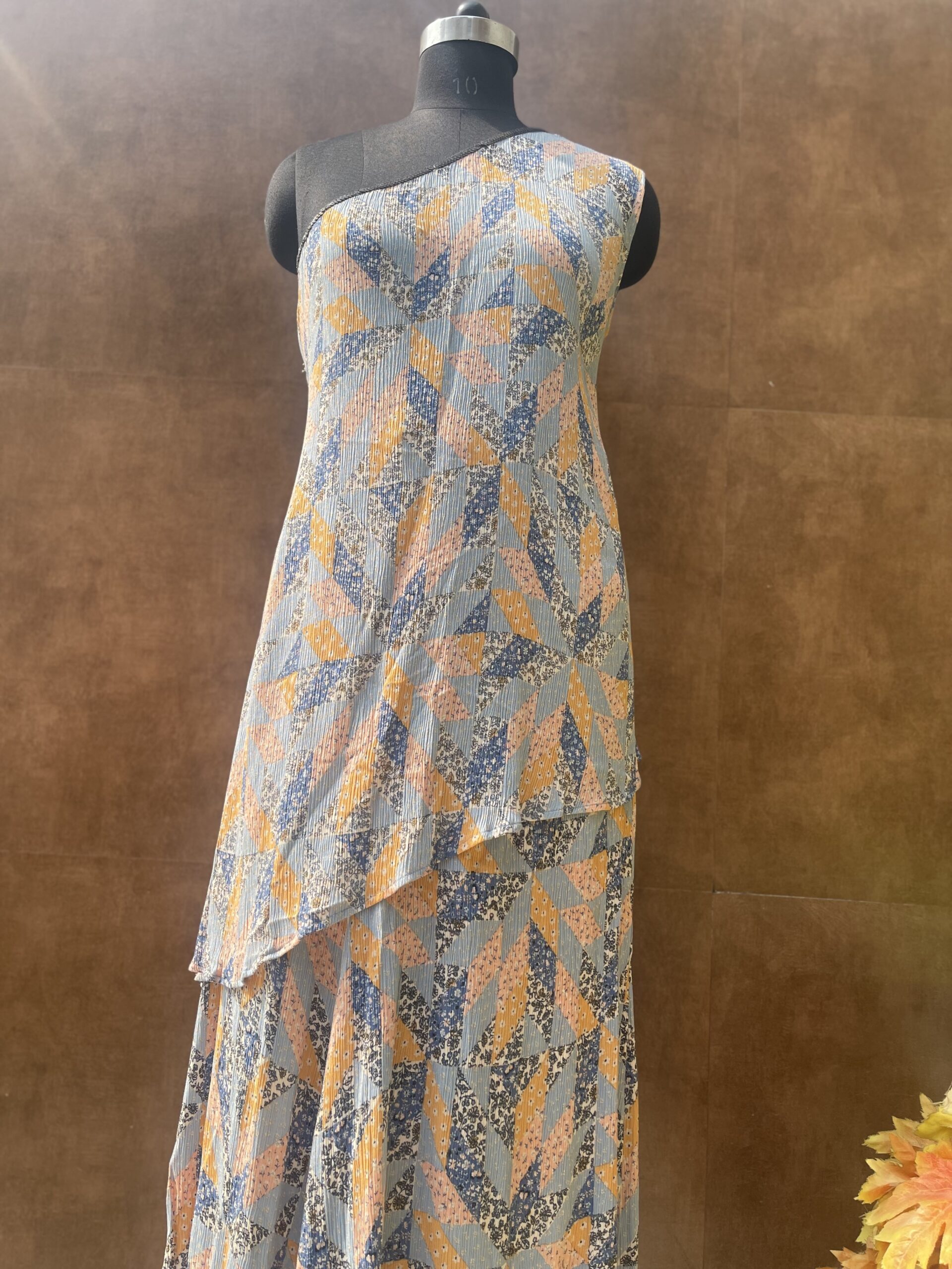 PRINTED OFF SHOULDER TOP AND PANT CORD SET
